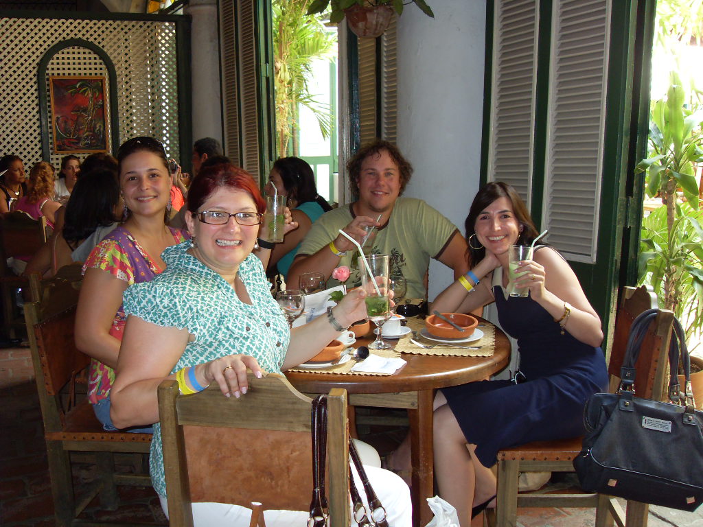 Hoje começa oficialmente o evento. Acordamos cedo, tomamos nosso café da manhã e fomos à palestra de abertura. De lá, tomamos dois ônibus para fazer uma visita à Habana Vieja. Os participantes foram divididos em dois grupos: aqueles que queriam apenas conhecer os atrativos turísticos do local e os que tinha interesse em uma visita especializada enfocando o patrimônio histórico e cultural do velho centro. Claro que escolhi a segunda opção! Passamos duas horas andando pelas antigas ruas da Habana Vieja e durante o trajeto (que já havia conhecido no dia anterior), aprendi um pouco mais sobre a história cubana e sobre os trabalhos de restauro que têm sido feitos naquela parte da cidade através de um órgão chamado “Oficina do Historiador”. Após a visita almoçamos no restaurante típico “La Mina”. Ao som de música típica cubana, tomamos nossos mojitos e “refrescos de naranja”.