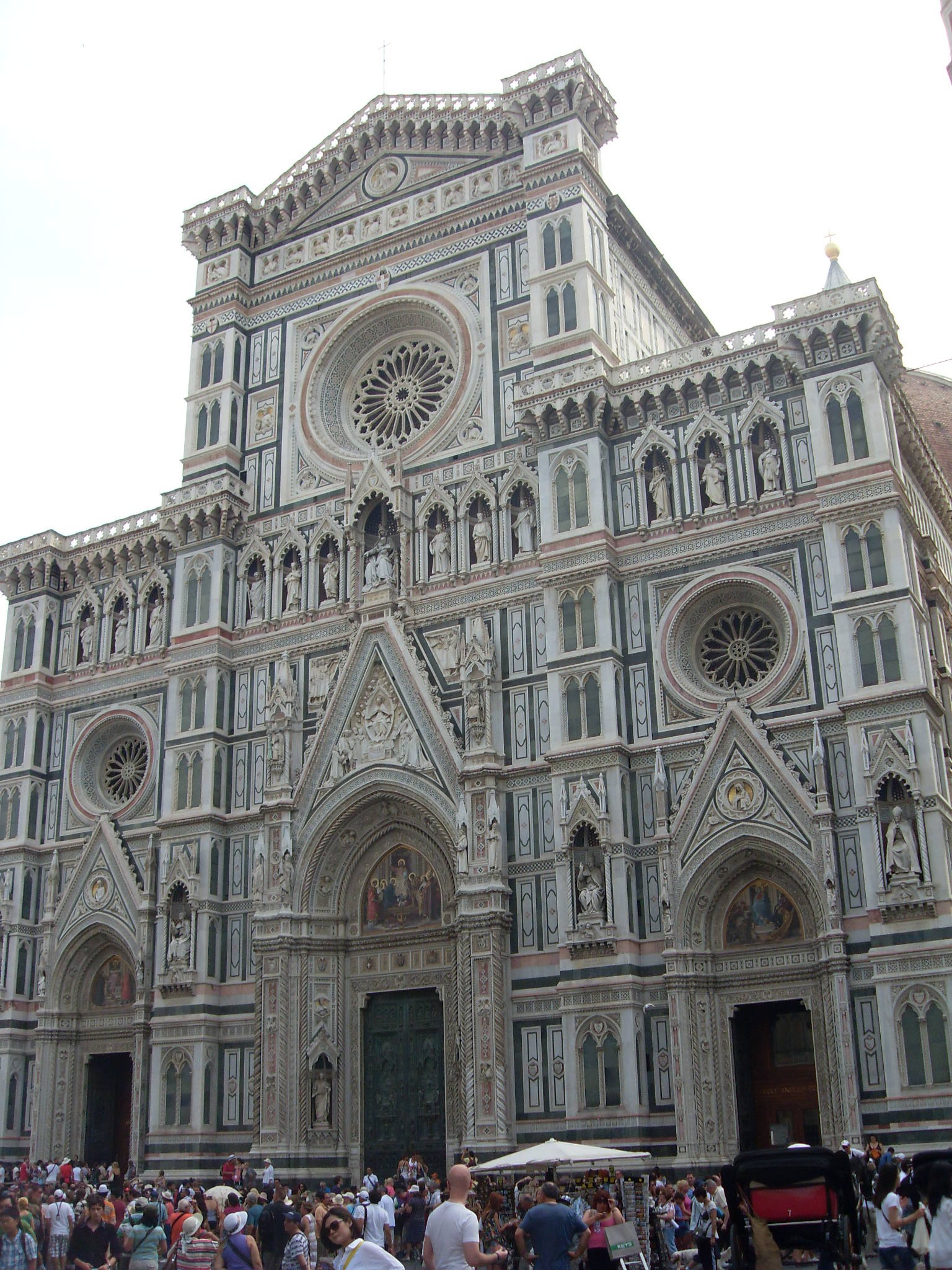 Próxima parada foi a Praça do Comércio, depois a Piazza della Repubblica e caminhamos um pouco mais até chegar até a Cattedrale di Santa Maria Del Fiori, a Duomo di Firenze (segue foto da Catedral logo abaixo). É uma igreja do séc. XIII, mas que só foi concluída no séc. XIX. Sua fachada é composta por mármores verdes e rosas e é de babar! Seu batistério também é lindo, principalmente pela porta em ouro (claro que a original não está mais lá!).