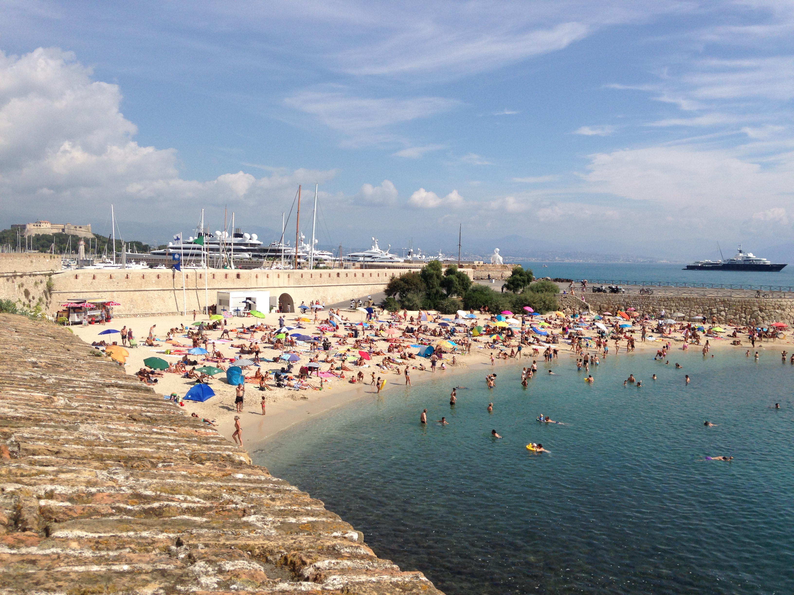 De lá fomos a Antibes, o principal porto da Côte d´Azur. A cidade, com clima bem bucólico e construída dentro de muralhas medievais, é onde estão aportados vários dos iates de luxo dos turistas da região. É bonitinha, mas não chega a ser um espetáculo. Passamos pelo Mercado (adorei ver os produtos locais), a Catedral (bem singela) e o Museu de Picasso. Segue abaixo fotos do edifício do Mercado, da vista do mar e de uma das praias.