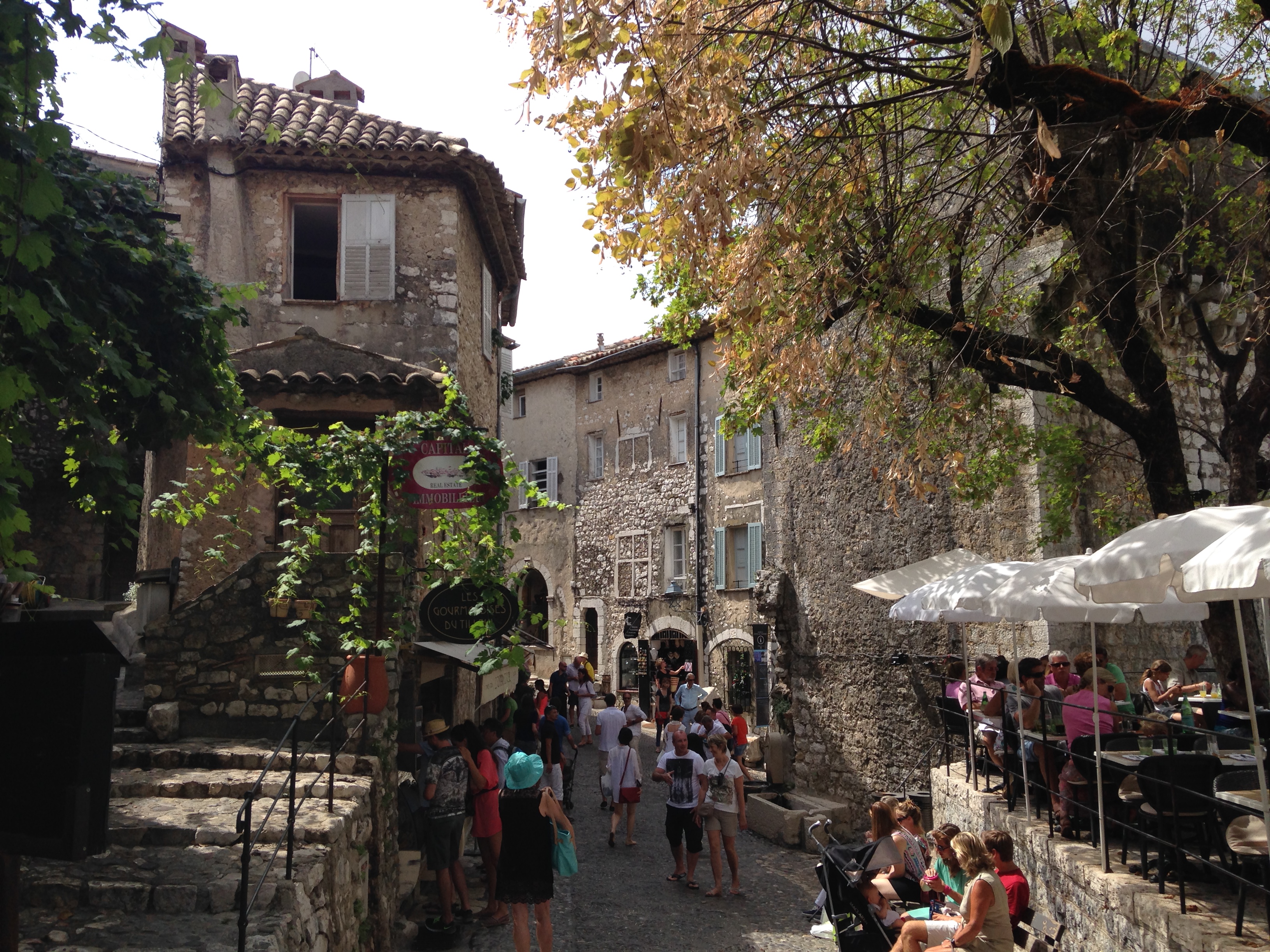 Para fechar nosso passeio visitamos Saint-Paul-de-Vence. Essa charmosíssima vila de muralhas medievais, ruas estreitas e sinuosas e casinhas construídas em pedra é mais que encantadora! Foi a surpresa do passeio. Fiquei fascinada pelo lugar, sério mesmo! Ela possui várias lojas de produtos da Provence e galerias de arte, um traço interessante, já que grandes artistas como Chagal, Matisse, Monet, Renoir foram inspirados por ela. Visita imperdível!