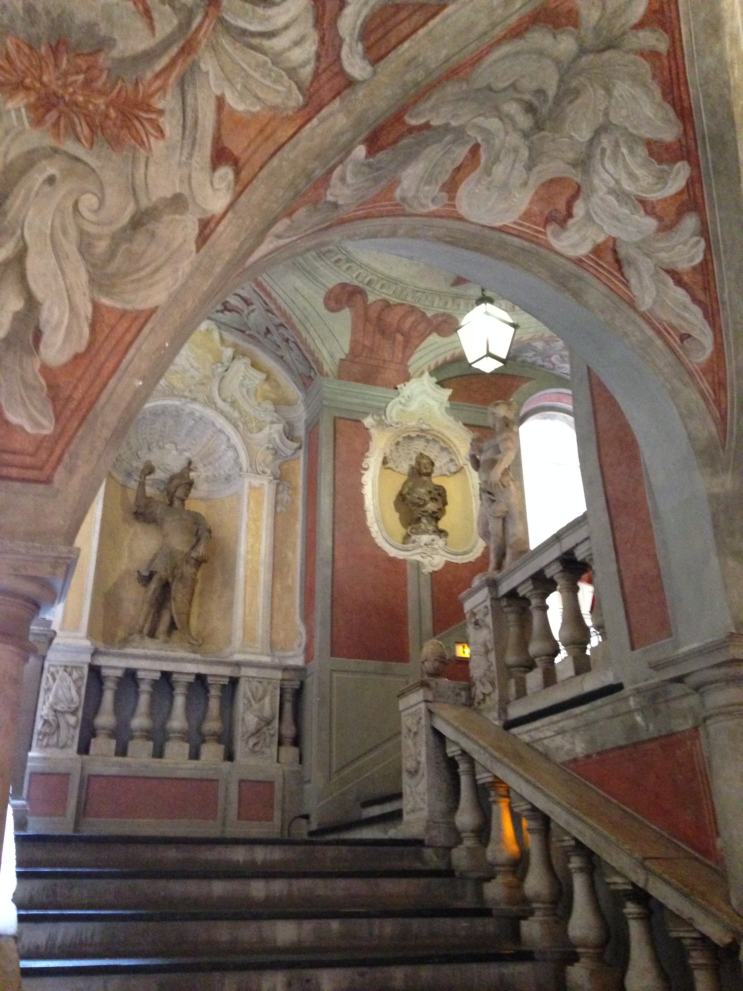 Durante minha estadia em Nice andei pelo centro histórico da cidade (Vieux-Nice). Nesta região, passei pela Prefeitura (Hôtel de Ville), Ópera (lindo edifício), Cours de Saleya (um mercado de flores bem mequetrefe, onde é possível encontrar restaurantes e cafés), Catedral Sainte-Marie et Sainte-Réparate (uma linda igreja barroca que destoa das tradicionais igrejas góticas francesas) e o Palais Lascaris (um palácio barroco construído no século XVII que expõe uma coleção de instrumentos musicais antigos. O acervo é bem fraquinho, mas o edifício é bacana. Entrada gratuita! ). Segue abaixo uma foto do interior do Palácio.