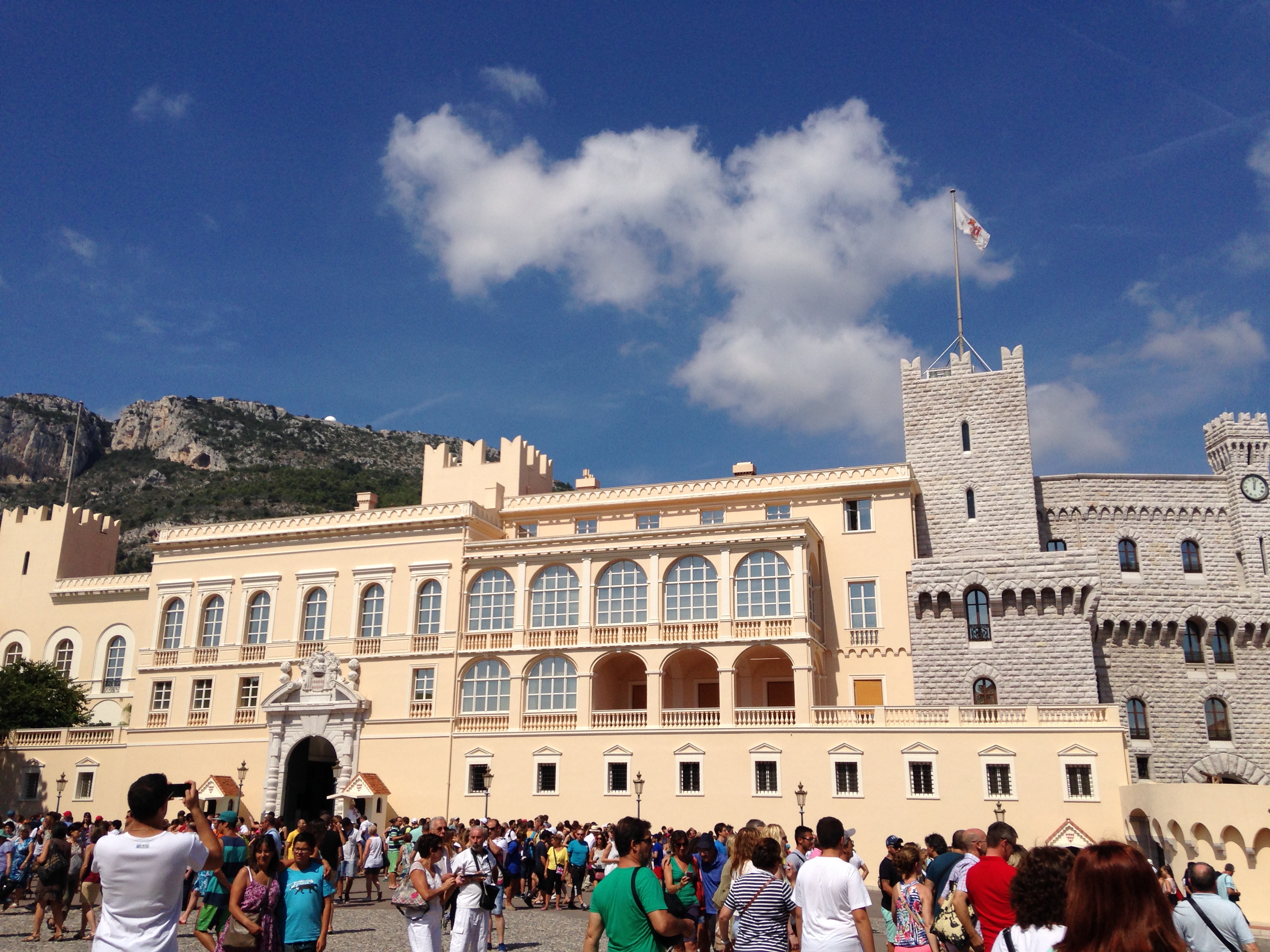 Mônaco – Se chegar a St. Tropez foi complicado, não há nada mais fácil que chegar ao Principado de Mônaco. Há um ônibus circular que saí da Promenade des Arts a cada quinze minutos (Ônibus 100) e que pára em frente ao Cassino de Monte Carlo. O trajeto dura em torno de 50 minutos e custa míseros €1,50. O melhor do trajeto são as vistas, portanto, tentem sentar do lado direito do ônibus. Mônaco era um lugar que eu tinha certeza que eu ia gostar, mas não tinha ideia o quanto. Localizada entre os alpes e o Mar Mediterrâneo é um dos menores países em extensão territorial e possui apenas 36.000 habitantes. Durante meu dia em Mônaco conheci o Palais de Mônaco (fiz uma visita guiada ao Palácio – € 8 e assisti à troca da guarda). Deem uma olhada no Palácio…