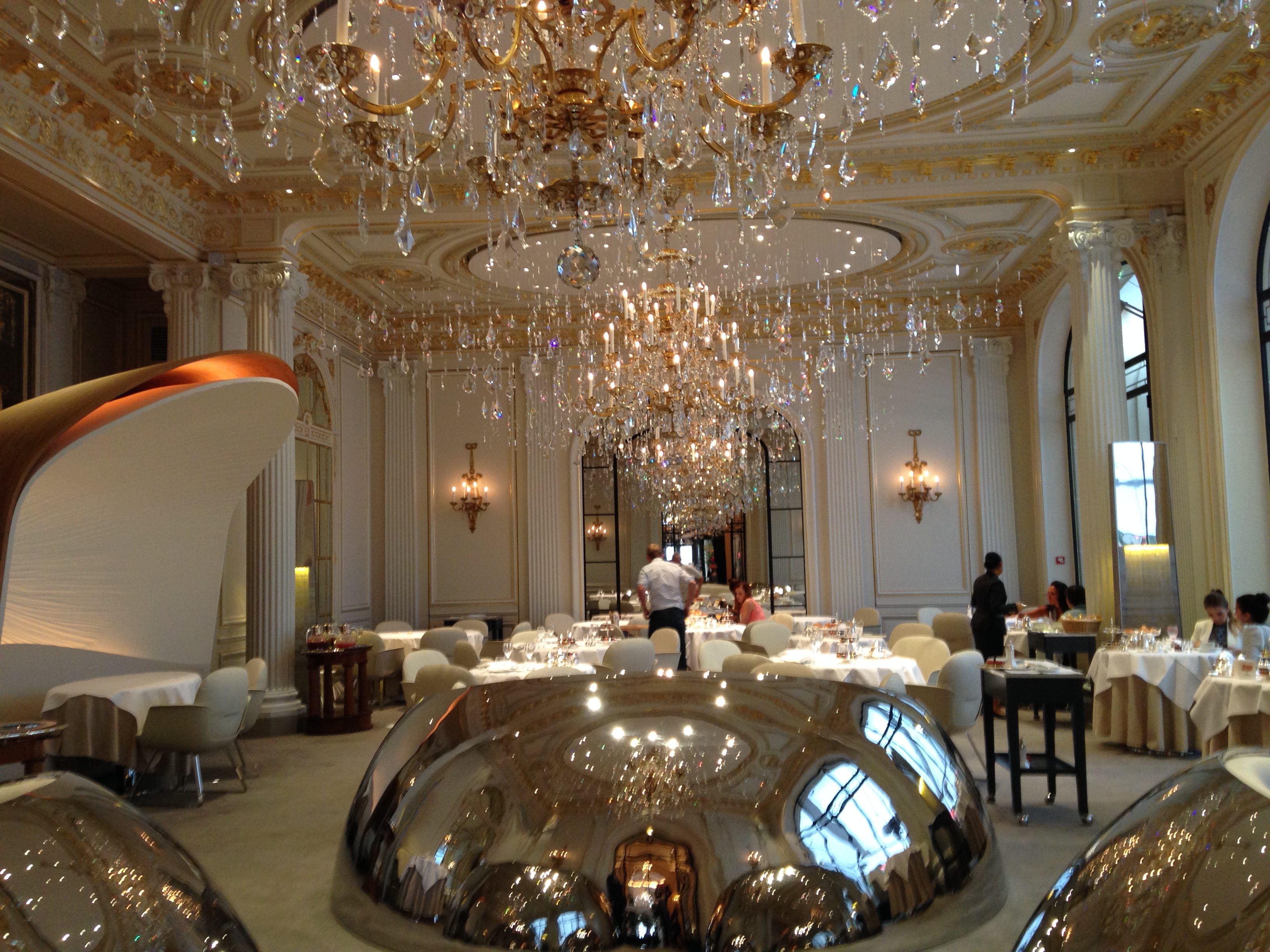 Já comentei neste blog que Paris tem vários dos melhores hotéis do mundo, mas que as tarifas são extremamente caras. Infelizmente ainda não posso me hospedar nestes empreendimentos, mas fiquei tão empolgada com meu café da manhã no Hôtel Le Negresco em Nice que decidi repetir a dose em Paris. Uma das manhãs tomei meu café no Hôtel Plaza Athénée. O hotel, recentemente reaberto após uma cuidadosa restauração, está localizado na Avenue Montagne, uma das ruas mais luxuosas da capital francesa. O espaço do café é coisa de outro mundo (um dos restaurantes mais bonitos que eu já vi na minha vida, sério mesmo!), o atendimento é impecável e os pães do café da manhã são todos produzidos pelo próprio empreendimento. Amei demais a experiência, mas já aviso que é super caro!!! Não é o tipo de coisa que dá para fazer todos os dias. Enfim, deem uma olhada no lugar…