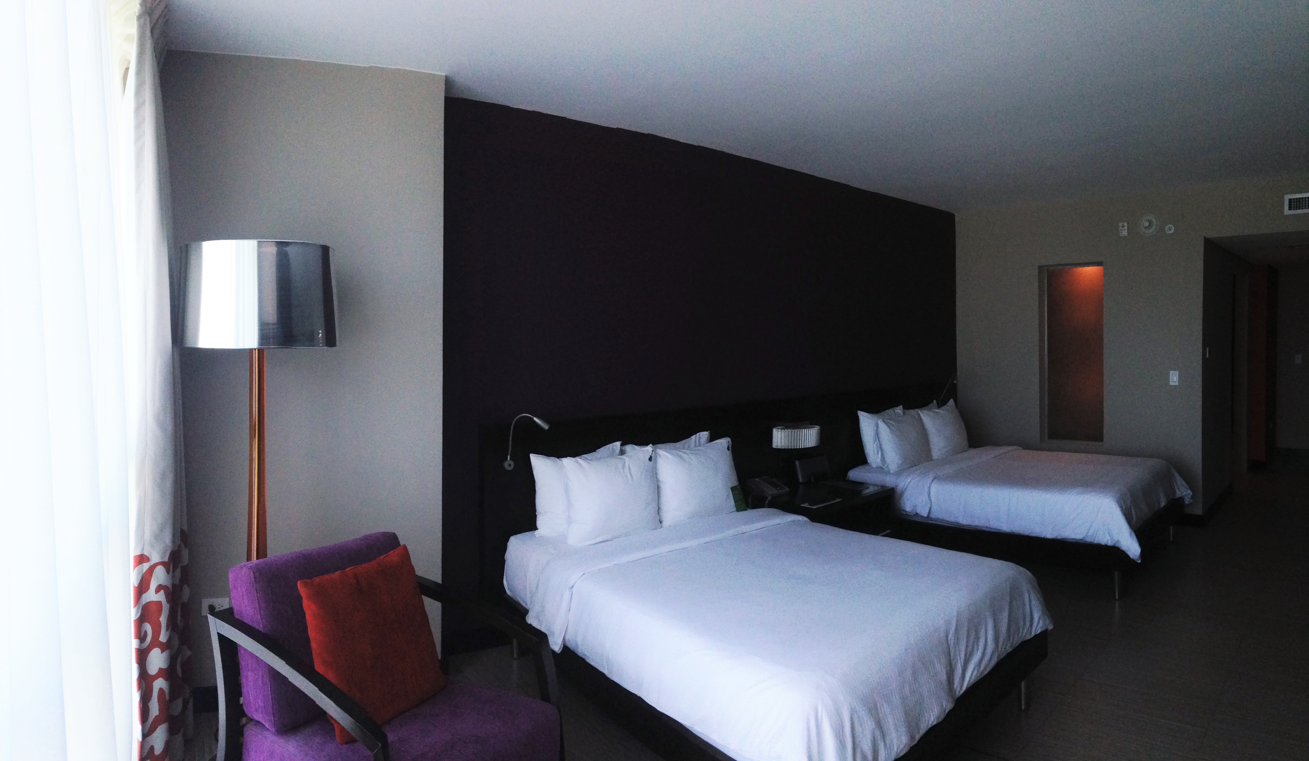 Já minha segunda opção foi o descoladíssimo Hard Rock Hotel Panama Megapolis. Na verdade, essa era minha primeira opção, mas o dólar alto não me deixou ficar por lá todos os dias. Esse era um empreendimento que eu estava louca para conhecer, mas fiquei um pouco decepcionada. O hotel é gigantesco! São mais de 1400 quartos e suítes espalhados por um edifício de 66 andares. O estabelecimento ainda oferece quatro restaurantes, boates, bares, spa, loja… Enfim, o que parecia ser um sonho, me sufocou um pouco. É um hotel de gente super jovem e animada e me senti meio velha. Também fiquei um pouco decepcionada com o apartamento, talvez porque estivesse esperando demais! De qualquer forma, gostei da experiência e o recomendo para os turistas que estão procurando um hotel de festa. No entanto, para quem quer descansar, não creio que seja a melhor opção. Ahhh! Devo admitir que os serviços eram ótimos e o café da manhã, super vasto. Deem uma olhada no interior do empreendimento e do meu apartamento.