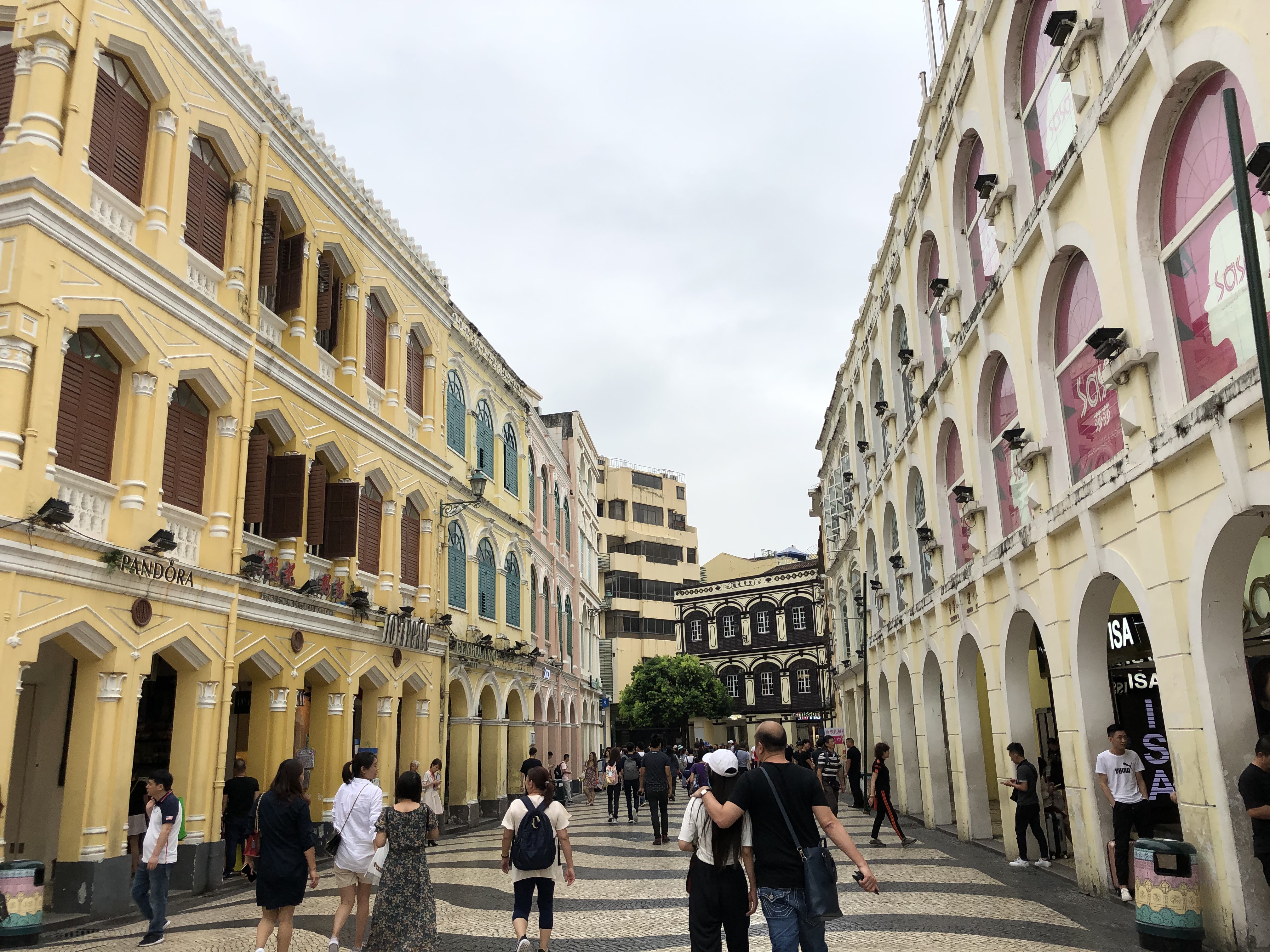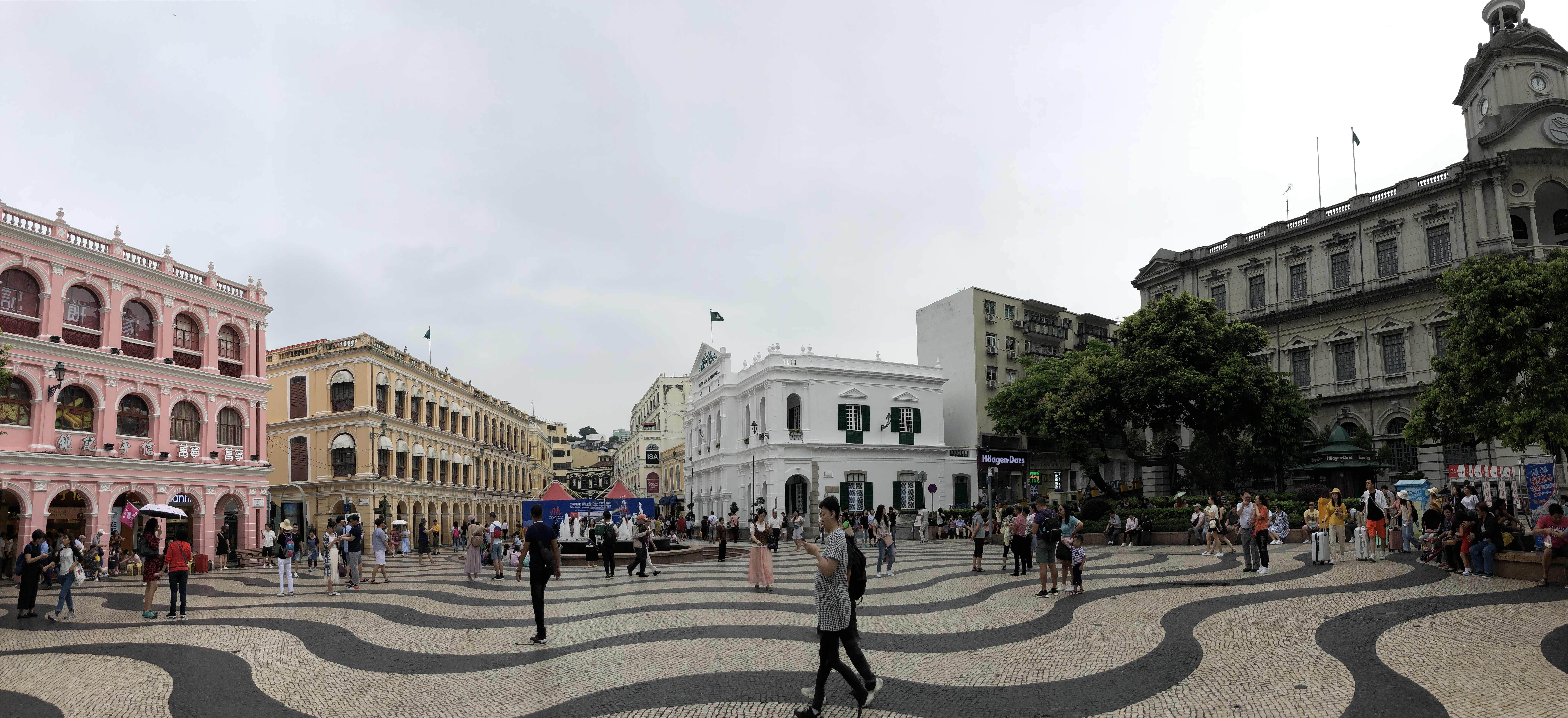 Chegando à Macau, peguei um táxi e fui ao centro da cidade. Neste período do dia visitei os seguintes atrativos: o Largo do Senado, coração do centro histórico e é onde estão localizados as principais edificações em estilo colonial português; ele nos remete à Portugal, ou mesmo ao centro de algumas cidades brasileiras. Era onde ficavam os antigos edifícios administrativos da Colônia e, assim como vários atrativos de Macau, foi declarado Patrimônio Cultural pela Unesco em 2006.