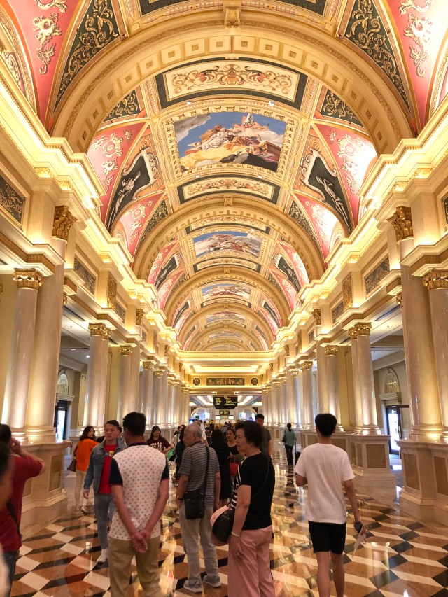 Peguei novamente um táxi e fui à Cotai, uma outra região de Macau onde estão localizados os cassinos. Neste período, visitei o Venetian Macao, o maior cassino do mundo, o Four Seasons, o Parisian (outro cassino impressionante) e o Sheraton Grand Macao Hotel. Segue abaixo algumas fotos do Venetian Macao.