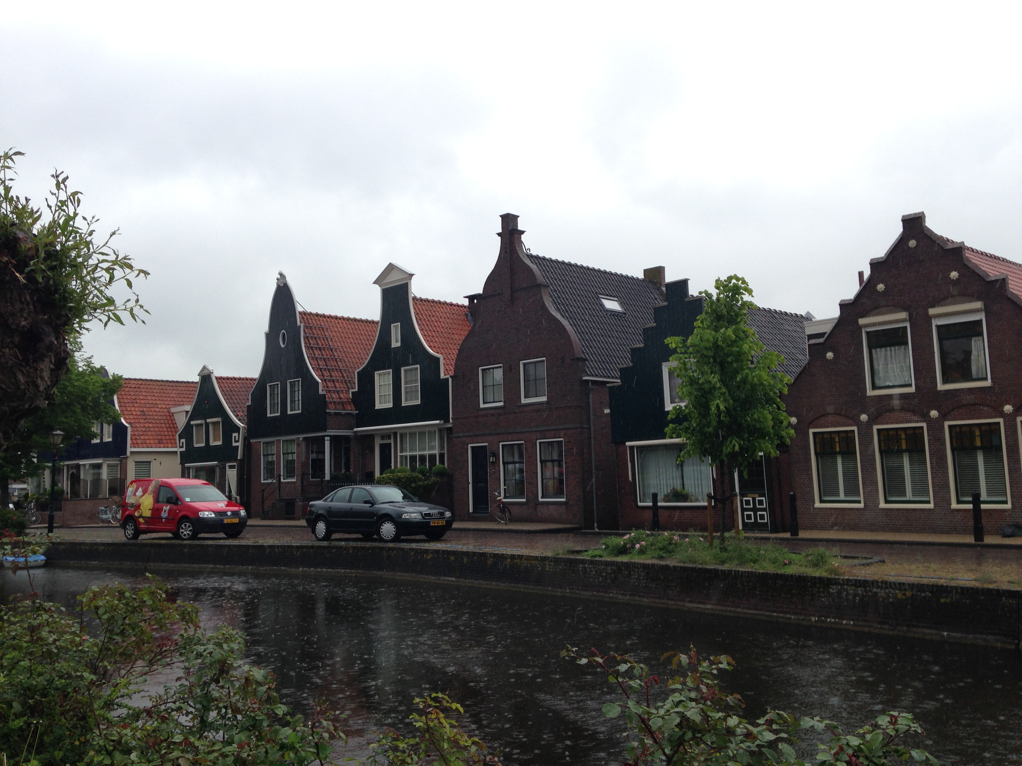 Na cidade, visitei a Cheese Factory Volendam, uma fábrica de queijos local. A visita foi meio “pega turista”. Explicaram como era produzido o queijo holandês, mas a explicação foi superficial e deixou bem claro que a intenção era vender o queijo produzido na empresa. Ainda sobre os queijos, fiquei impressionada ao saber que a Holanda possui 4 milhões de vacas, quer dizer, 1 vaca para cada 4 habitantes. Os holandeses são mestres na fabricação de queijos e exportam ¾ de sua produção. Mesmo assim, os holandeses comem muito queijo; são 21 quilos por habitante/ano (muito, não?!). Saindo da fábrica de queijos fomos ao Porto para comer um peixinho frito, prato típico local, e esperar nosso barco para visitar a Ilha de Marken. Marken, hoje uma península, é outro vilarejo fofinho ao norte da Holanda. É uma colônia de pescadores que ainda mantém os antigos costumes holandeses. As casas são todas pintadas em preto e verde, mas isso não se deve à uma estratégia de design e sim por razões econômicas; como a região era muito pobre, as tintas eram feitas a partir de matérias-prima naturais como ervas e alcatrão.  Deem uma olhada.