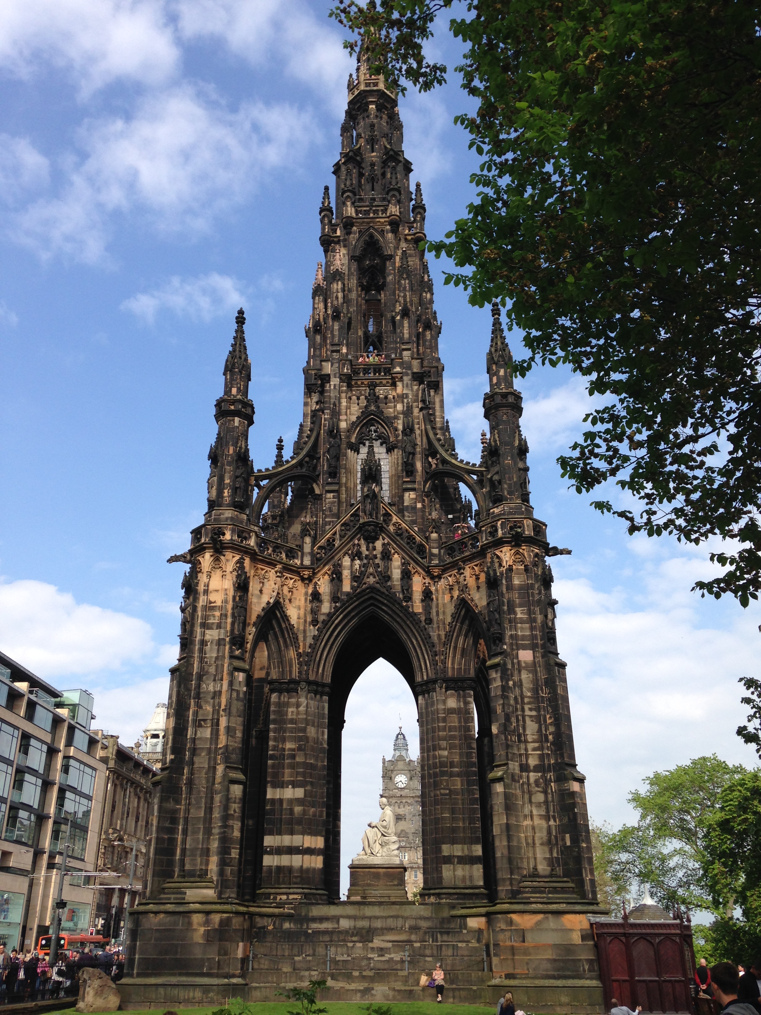 De lá, fui à Cidade Nova (já explico essa diferença entre Cidade Antiga e Cidade Nova), pois queria aproveitar o dia para fazer umas comprinhas. As principais ruas comerciais da cidade são a Princes Street e a George Street. Na verdade, Edimburgo não é conhecida como uma das capitais do consumo. Ela não oferece todas as opções encontradas em Londres, Paris ou Berlim. Além disso, por conta da alta cotação da Libra, não tem preços muito competitivos, mas é sempre bom dar uma olhadinha! Ahhh! É importante salientar que o comércio na capital escocesa fica aberto até aos Domingos (Adoro quando as lojas ficam abertas aos Domigos!). Andando pela Princes Street visitei o Scott Monument, um monumento em estilo neo-gótico dedicado ao escritor Walter Scott. Ahh! É possível subir na torre para observar a cidade, mas eu não me interessei. Segue foto abaixo.