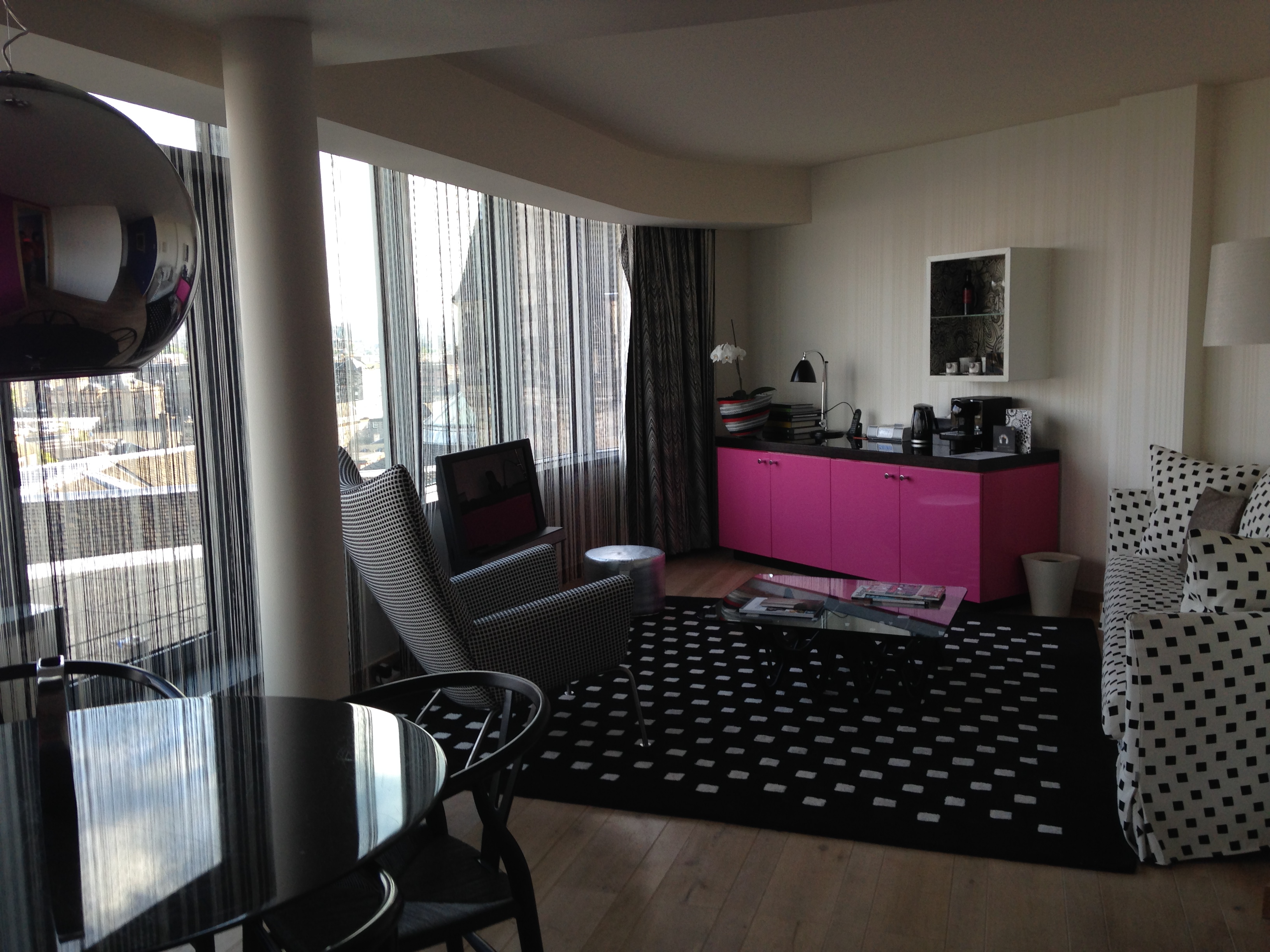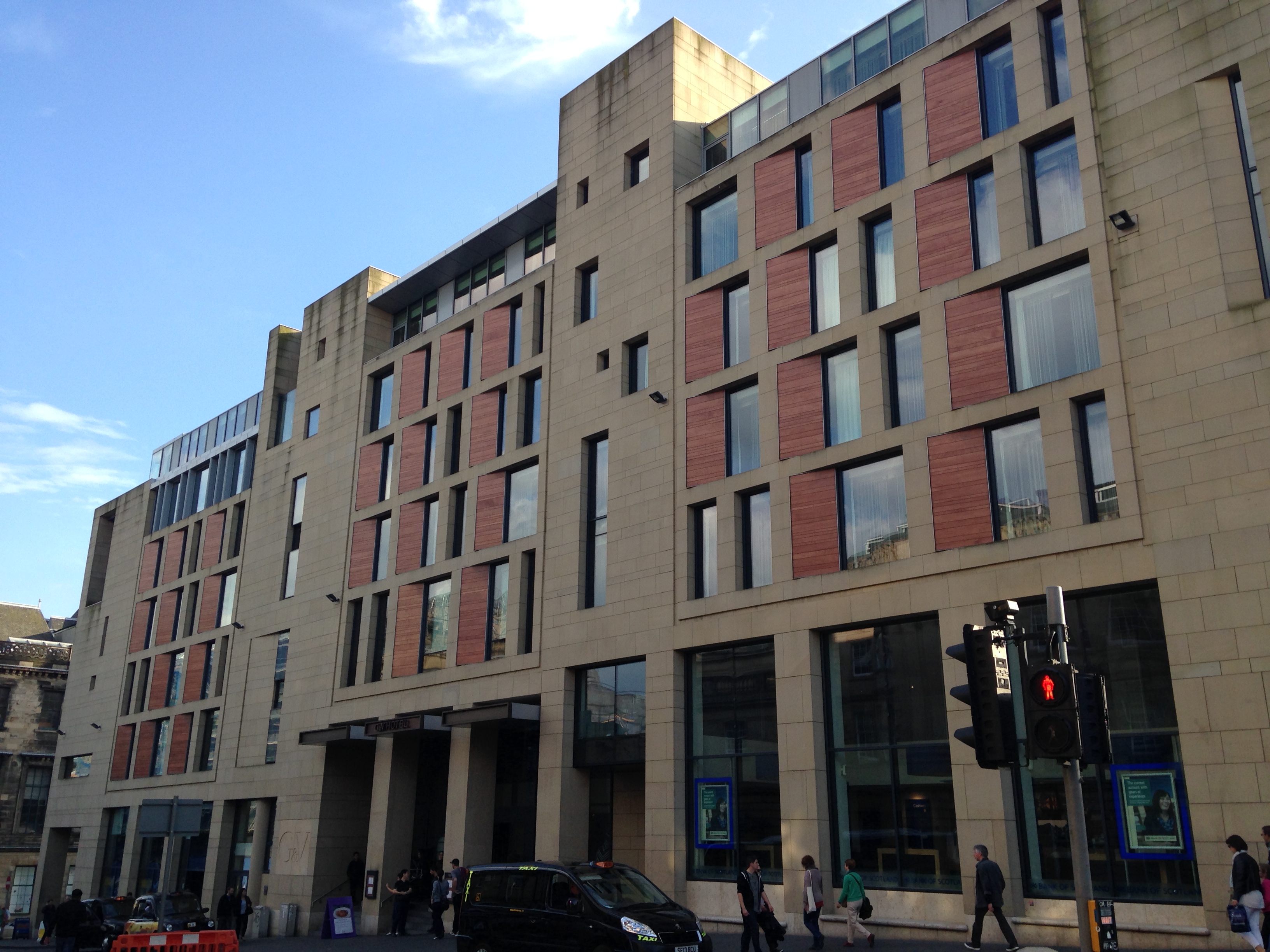 Fui à Edimburgo de avião e cheguei à capital escocesa no início da tarde. Novamente optei pela Germanwings (já tenho até um cartão fidelidade da empresa!) e paguei € 243.99 pelo trecho de ida e volta saindo de Colônia. O aeroporto de Edimburgo é pequeno, meio antiquado e muvucadinho, mas está longe de ser um Terminal Tietê em véspera de feriado. A cidade não oferece metrô, mas há ônibus (Airlink 100) que saem da entrada do Aeroporto e param na Waverley Station, no centro de Edimburgo. Eles são super práticos e custam £ 4 por trecho. Ahh! Assim como na Inglaterra, a moeda da Escócia também é a Libra Esterlina. Se o Real já não vale nada quando transformado em Euro, transformado em Libra então, ele quase desaparece! Eu troquei uma pequena parte do meu dinheiro no próprio Aeroporto para poder chegar ao centro (as cotações no Aeroporto são sempre mais caras) e depois ia trocando o restante do dinheiro na medida em que eu sentia necessidade. Vale ressaltar que as casas de câmbio em Edimburgo não cobram comissão pela troca! Chegando ao centro da cidade fui direto ao meu hotel para fazer o check-in. Quando comecei a planejar minha viagem à Edimburgo, sabia que queria me hospedar no Hotel Missoni, pois é um empreendimento abordado nas minhas aulas de Hotelaria. Quando dei uma olhada nos valores das diárias, quase caí de costas. Mas sem desistir do hotel, fiz várias projeções de possíveis datas de viagem e buscava alternativas em diferentes sites de reservas para verificar se conseguiria uma tarifa mais econômica. Deu um trabalhinho, mas funcionou! Essa é uma boa dica para quem quer pagar mais barato para se hospedar no hotel dos sonhos. O Missoni Hotel fica no centro da cidade antiga de Edimburgo (Old Town), entre a Catedral de St. Giles e o Castelo de Edimburgo. Perfeito! Na verdade, perfeito foi fazer o check-in e ser avisada de que eu teria um upgrade. Eu havia reservado um apartamento standard, o mais básico, e eles me ofereceram a melhor suíte do hotel. Eheheheh! Foi o primeiro upgrade da minha vida! O apartamento era tão grande que eu fiquei meio perdida, sem saber o que fazer! Além da linda e luxuosa suíte, toda decorada com mobiliário e enxoval Missoni, o hotel é bem legal e o atendimento é impecável! Ahhh! Até os mensageiros usam um kilt com o tradicional ziguezague da Missoni. Mais do que recomendado! Deem uma olhada nas fotos da fachada do hotel e da minha suíte bacanérrima.