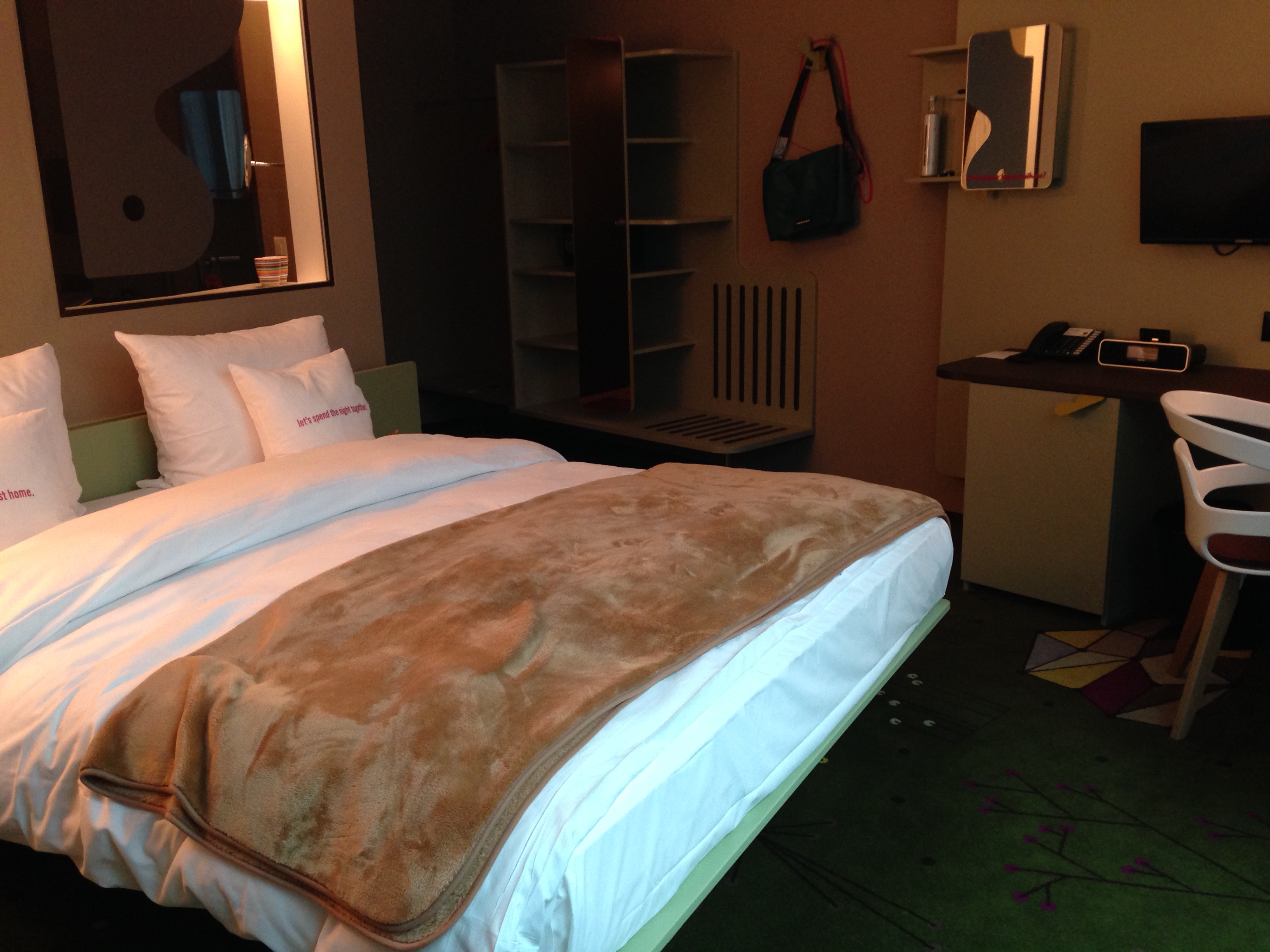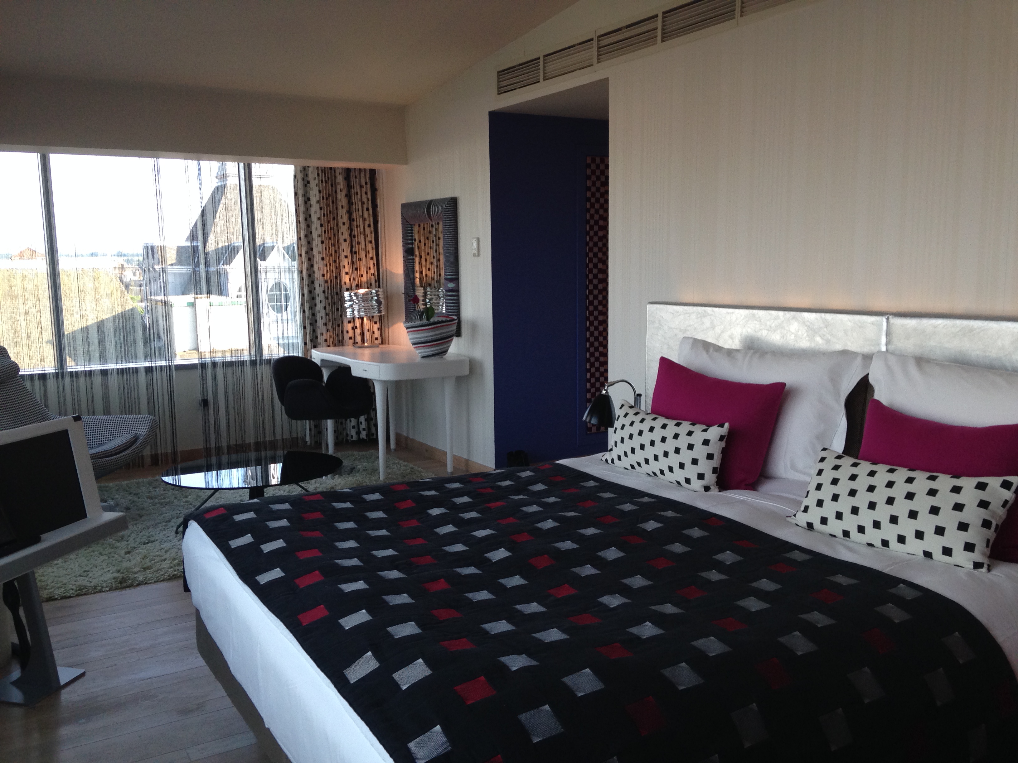 De lá, tomei um táxi ao meu hotel. Dessa vez escolhi um hotel longe da estação de trens e do centro da cidade, mas tinha um motivo especial. Quis ficar hospedada no Hotel gerenciado pela Escola de Hotelaria de Haia (Hotelschool The Hague), o melhor curso de hotelaria da Holanda. Chamado Skotel Amsterdam, este empreendimento hoteleiro está localizado a uns 20 minutos de bonde do centro da cidade. Ele oferece apenas 15 apartamentos e o mais interessante é que cada quarto foi decorado por uma cadeia hoteleira específica. Eu fiquei na UH da Center Parks, uma rede do Reino Unido e adorei meu quarto; super espaçoso, confortável, cama gostosa e chuveiro maravilhoso! Não acho que este hotel seja formalmente classificado, mas é um empreendimento de categoria superior, tipo quatro estrelas. Todos os funcionários do hotel são alunos da própria escola, inclusive as camareiras. Eles trabalham no estabelecimento como parte das atividades práticas do curso. O valor da diária é muito bom (€ 72 em um apartamento single com café da manhã), principalmente por se tratar de Amsterdã, uma capital com uma hotelaria cara. E a falta de experiência dos alunos é compensada pela infraestrutura de primeira e pela grande atenção dada aos hóspedes. Adorei e recomendo muito! Deem uma olhada nas fotos do hotel.