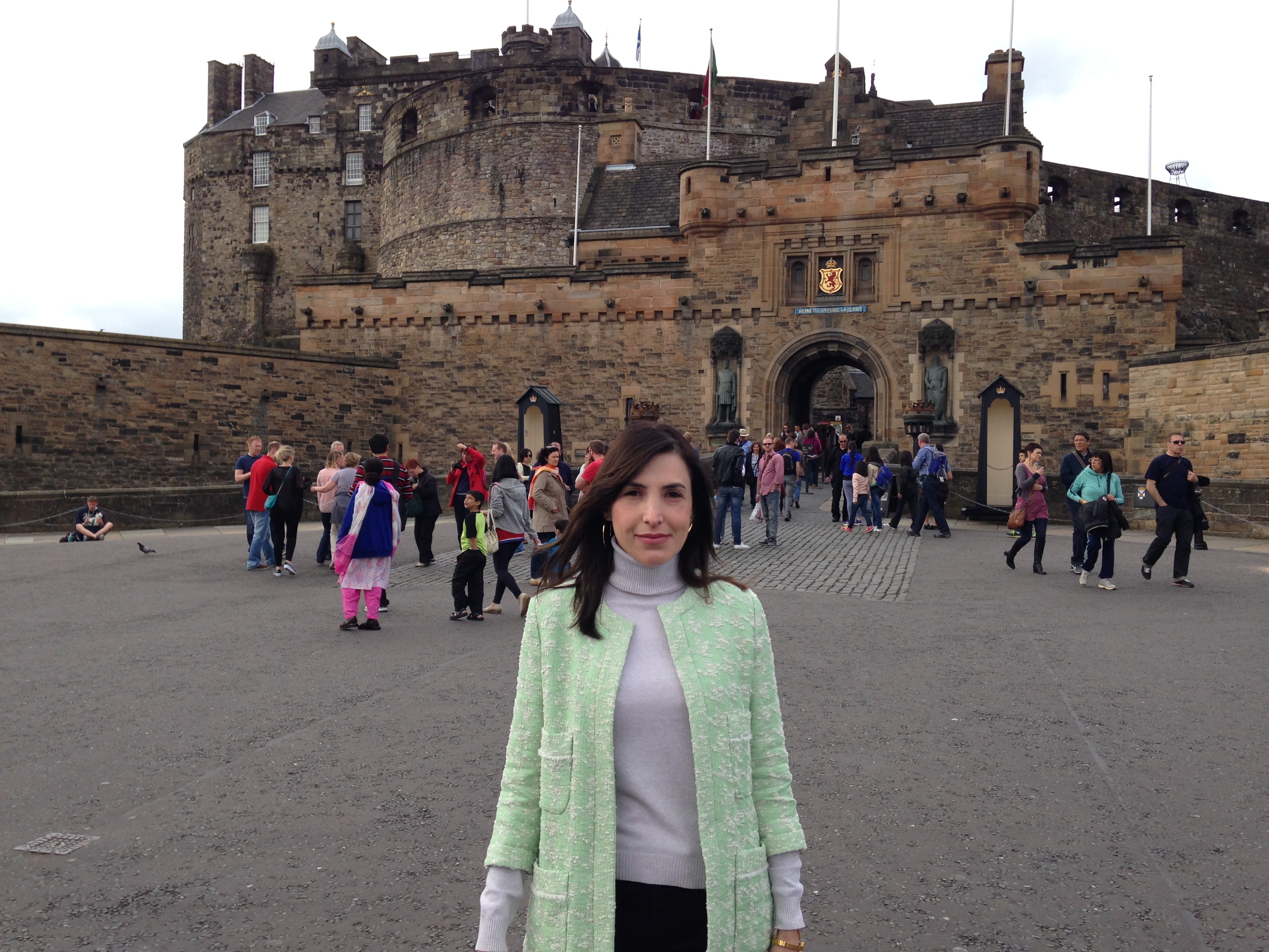 Como o dia não amanheceu muito bonito, optei por atividades indoor. No período da manhã, fui conhecer o Castelo de Edimburgo. Instalado onde já foi um vulcão, esta antiga fortaleza iniciou sua edificação ainda na Idade Média e hoje oferece um complexo de instalações de vários períodos históricos que mostram um pouco das guerras e da monarquia escocesa. Pense em um lugar bacana… Há vários pequenos museus e outras atividades temáticas dentro do Castelo. Além disso, a cada 30 minutos há pequenas visitas com guias locais que contam um pouco da história do lugar. Adorei! Imperdível! Uma das coisas que mais me chamaram a atenção foi ver o cuidado que os escoceses tinham em manter suas raízes vivas, mesmo durante as guerras. O tradicional kilt foi incorporado ao uniforme militar e a gaita de fole era levada aos campos de batalha para serem tocadas nos momentos de descanso. O ingresso custa £ 16. Segue abaixo uma foto minha em frente à Fortaleza.