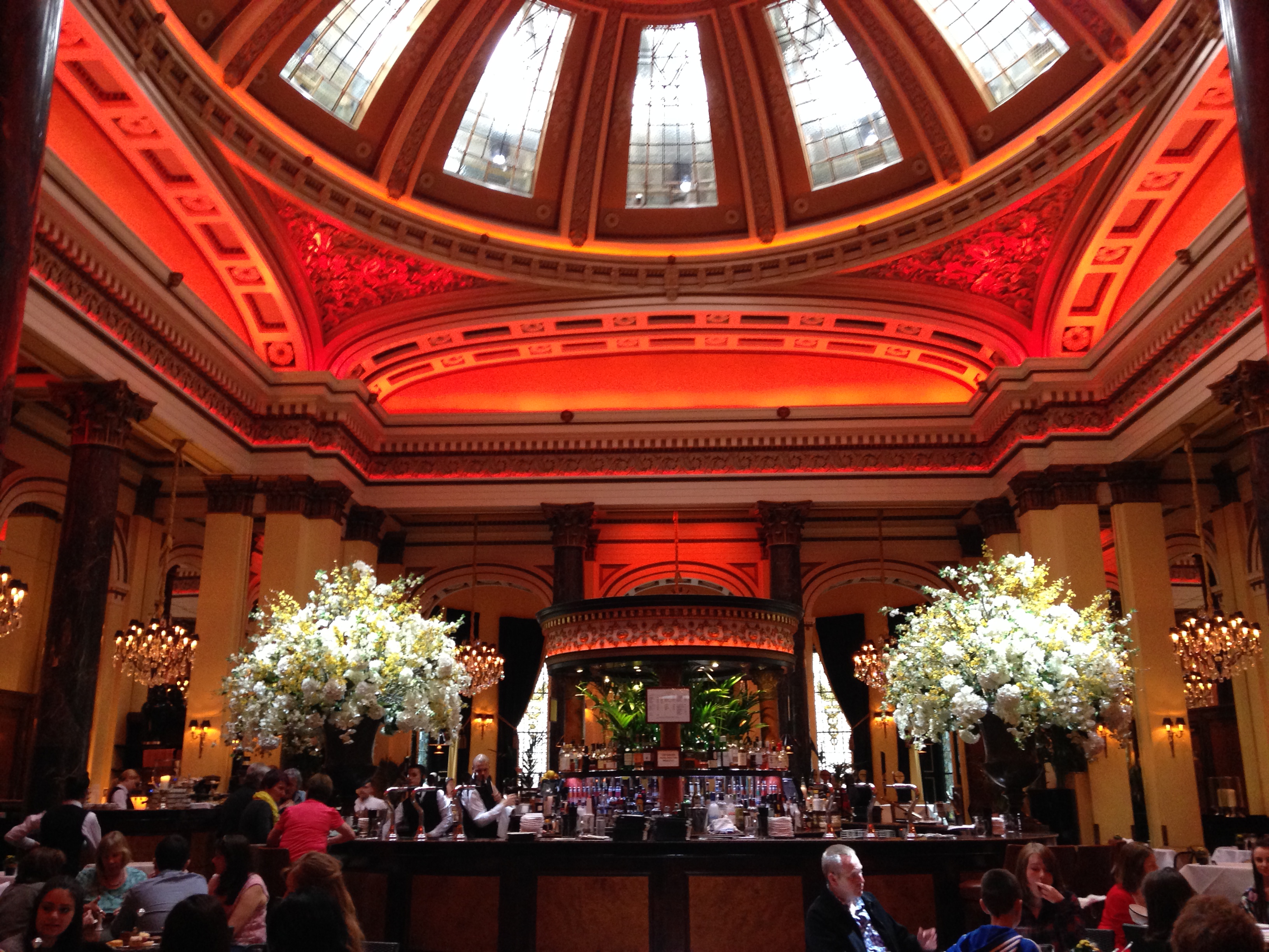 Saindo do Castelo fui novamente à Cidade Nova (New Town), pois queria almoçar em um lugar especial. Edimburgo é uma cidade que oferece várias opções gastronômicas. É possível encontrar restaurantes, pubs, brasseries, casas de chá, padarias, instaladas tanto em lindos edifícios históricos como em modernas e descoladas edificações. É possível encontrar boas opções por toda a cidade, mas a Rose Street e a George Street são duas ruas especiais. Almocei no The Dome, um antigo banco transformado em Restaurante localizado logo no início da George Street. O lugar é maravilhoso! Mesmo oferecendo um ambiente extremamente requintado, o restaurante é bem turístico, sem muitas frescuras. O cardápio é descomplicado, com opções que prezam mais ao sabor que a alta gastronomia e os preços são justos. Pedi um escalope de porco ao molho de cogumelos e batata sauté. Estava divino! E olha que nem sou muito fã de carne de porco! Adorei a experiência e recomendo! Deem uma olhada nas fotos do Restaurante. Também fiquei com vontade de conhecer o The Witchery By The Castle, um outro lindo restaurante histórico  localizado próximo ao Castelo de Edimburgo. Quem sabe em uma próxima visita?