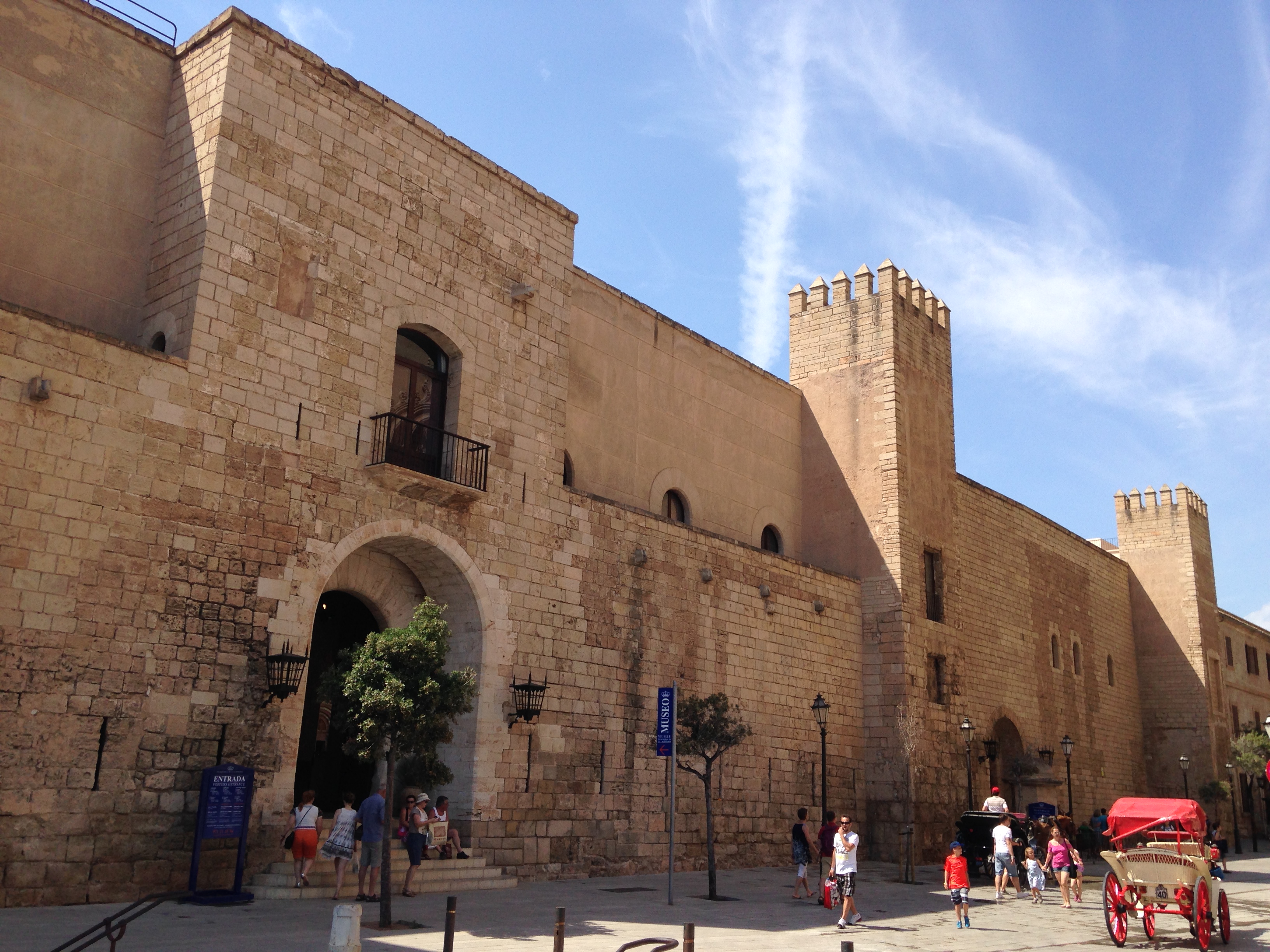 O Palau de Almudaina ou Palácio Real de la Almudaina é uma fortaleza construída durante o período de dominação árabe na cidade e reconstruído por Jaime II séculos depois, durante o Reinado de Aragón. É uma das residências da Família Real Espanhola e conta um pouco da história desta rica cidade. O lugar é bacana, muito bem conservado, vale a visita! Ahhh! O bilhete custa € 7. Segue abaixo duas fotos do Palácio. A primeira é a da fachada do atrativo e a segunda mostra parte de seu pátio central.