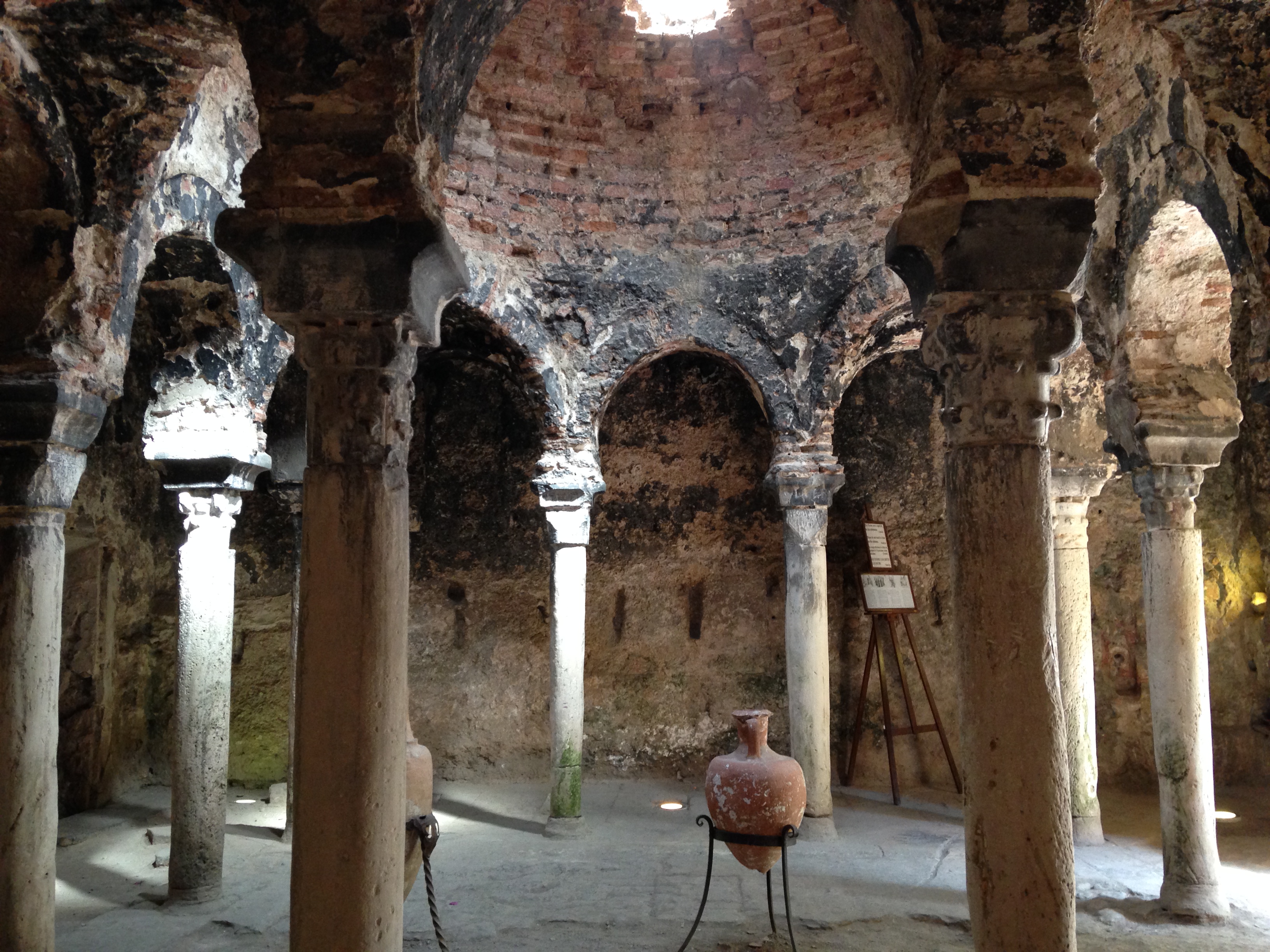 Após minha visita à Catedral, passei ainda no Museu de Mallorca, um museu gratuito que conta a história da cidade por meio de objetos como vasos e joias. Ele é muito pequeno,  não  acho que valha a pena conhece-lo. Também visitei os Baños Árabes, uma construção do século X que serviu como um banho de caráter privado durante a ocupação árabe da cidade. O local também é pequeno, nada muito representativo, mas custa apenas € 2,50 . Segue abaixo uma das salas dos banhos.