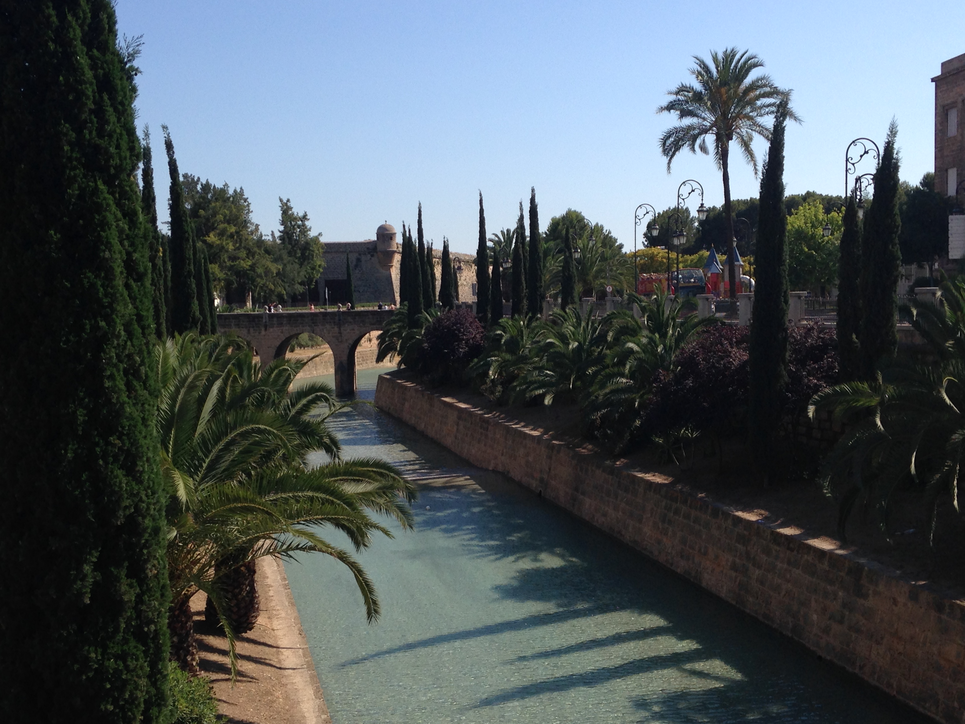 Falando um pouquinho mais sobre o centro histórico da cidade é importante ressaltar como esta região é linda. Ela é em parte cercada por muralhas (a outra parte das muralhas foi destruída a partir do crescimento de Palma) e é composta, em grande parte, por um casario em estilo colonial espanhol. É charmosa, está super bem conservada e me lembra Cartagena de Indias na Colômbia. Também estou impressionada com o paisagismo da cidade. O centro histórico é muito verde. Esta repleto de palmeiras, flores de diferentes tonalidades e fontes. Deem uma olhada.
